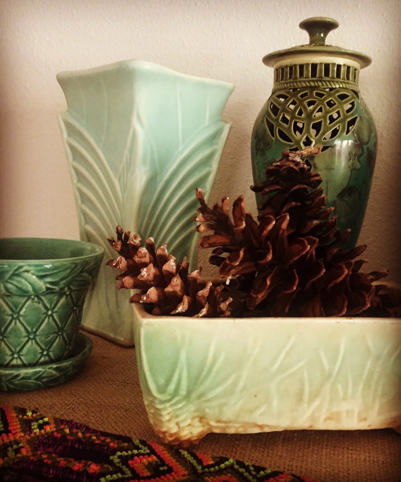 So..... Sunday...... I washed several pieces of my pottery and redisplayed a few. Love the blue/greens.